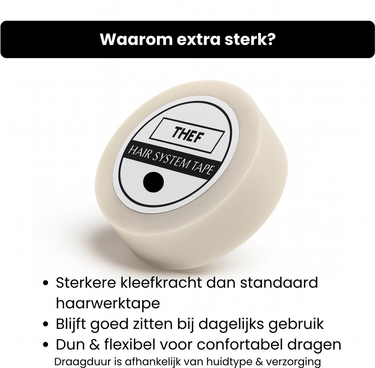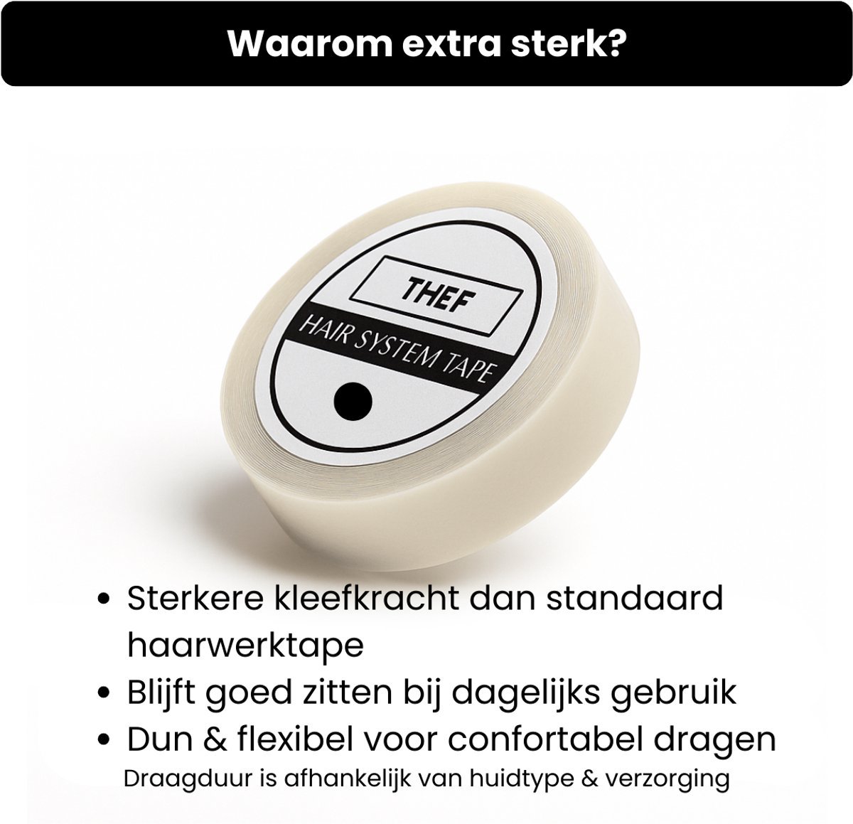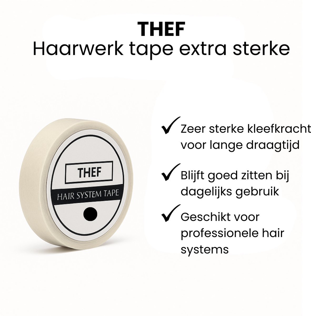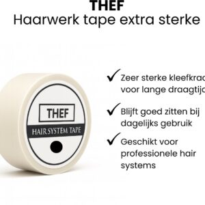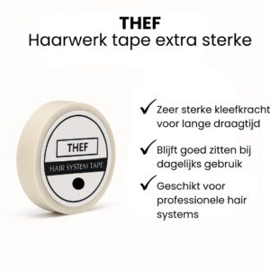 Thef Haarwerk Tape – Extra Sterke Hechting – Zeer Langdurige Draagtijd is de krachtigste tape in het Thef-assortiment en is ideaal voor het stevig bevestigen van pruiken, pruiken dames, toupets en intensief gedragen lace wigs. Deze hoogwaardige hair tape is ontwikkeld voor gebruikers die maximale zekerheid nodig hebben, bijvoorbeeld bij sporten, drukke werkzaamheden of langdurig dagelijks gebruik.
