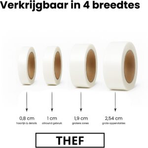 - Verkrijgbaar in 0,8 cm, 1,0 cm, 1,9 cm en 2,5 cm breedte