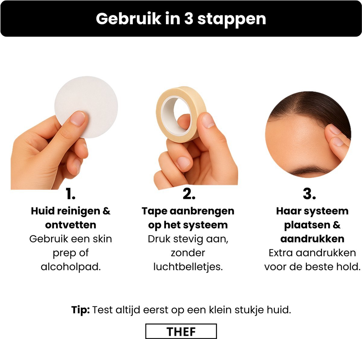 Voor iedereen die een onzichtbare, matte en langdurige bevestiging wil voor pruiken, toupets, lace wigs en andere haarwerksystemen.