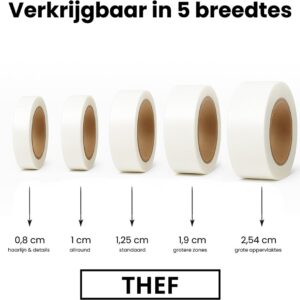 - Verkrijgbaar in 0,8 cm, 1,0 cm, 1,25 cm, 1,9 cm en 2,5 cm breedte