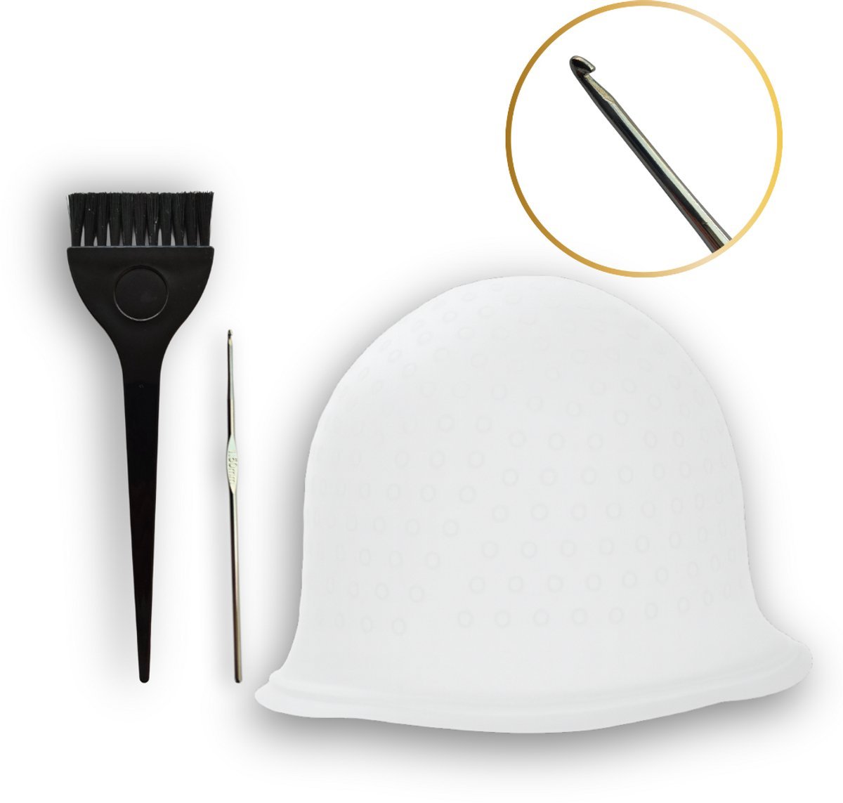 Inclusief highlight cap, haaknaald en verfkwast – alles wat je nodig hebt voor het zetten van highlights of lowlights in één verpakking.
