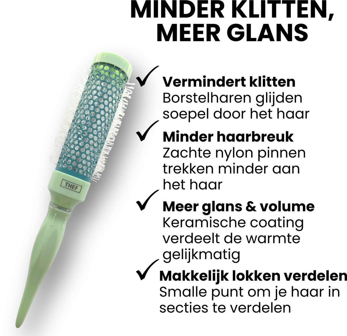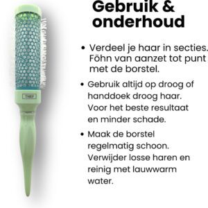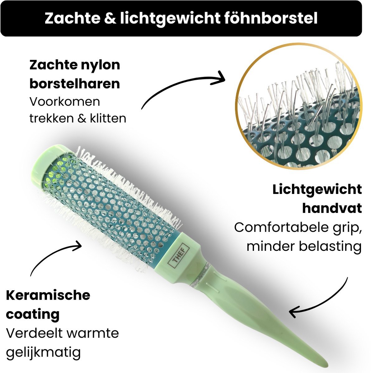 De THEF professionele föhnborstel is een ronde stylingborstel met keramische coating, ontworpen voor het creëren van volume, gladheid en een natuurlijke slag. Deze groene variant combineert functionaliteit met een stijlvolle uitstraling en is geschikt voor zowel salon- als thuisgebruik.