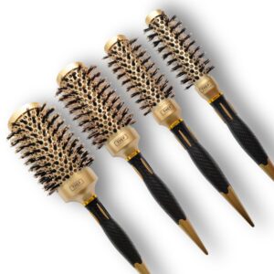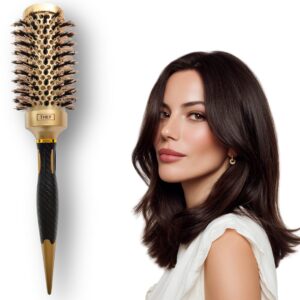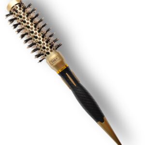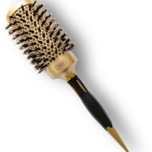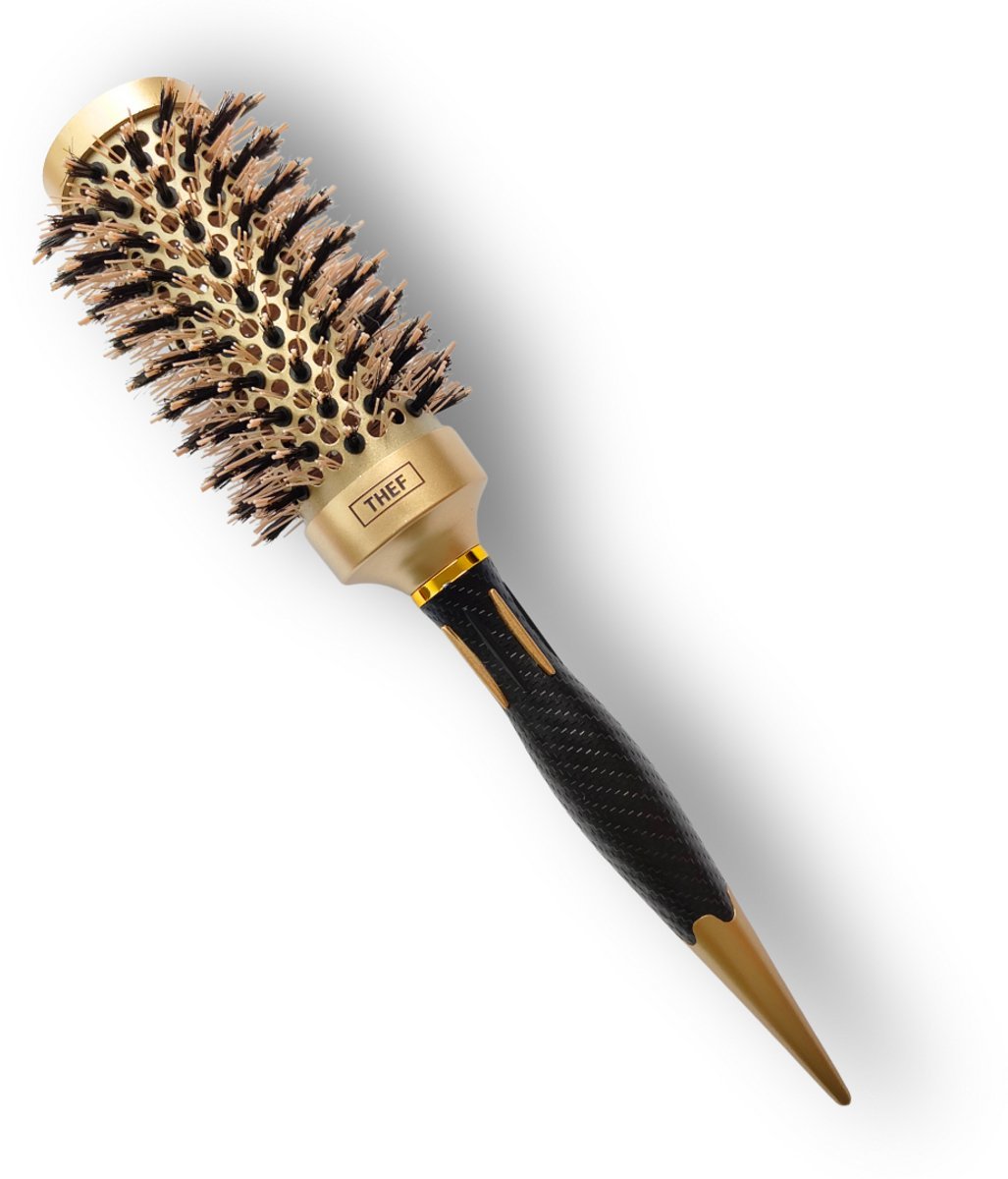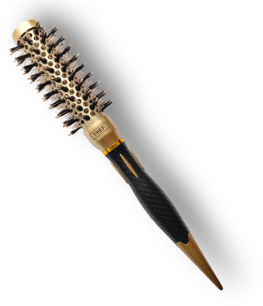 De THEF professionele föhnborstel in goud/zwart is een nano-keramische ronde stylingborstel, ontworpen voor gecontroleerd föhnen, gladmaken en het creëren van volume en glans. Geschikt voor zowel professioneel salongebruik als thuisgebruik en voor alle haartypes.