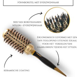 Dankzij de nano-keramische cilinder, de combinatie van nylon- en everzwijnharen en de ergonomische handgreep met stylingspunt biedt deze borstel maximale precisie tijdens het stylen. Ideaal voor wie graag secuur werkt en een verzorgd eindresultaat wil.