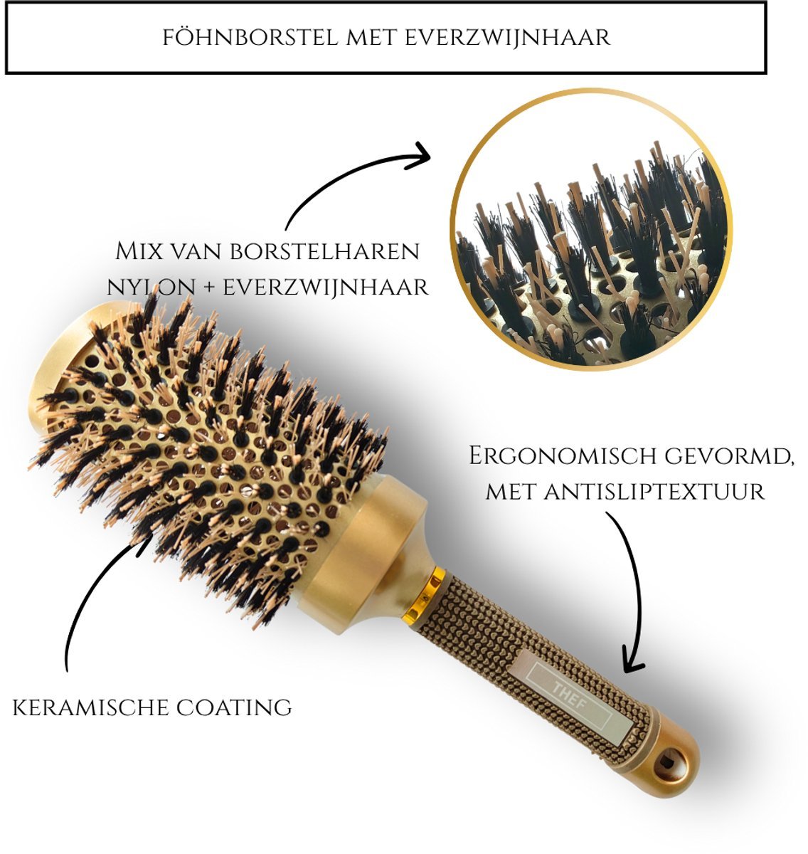 THEF professionele föhnborstel – goud – NANO-keramische stylingborstel met gemengde haren