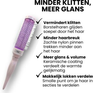 Dankzij de combinatie van hittebestendige materialen, antiklit nylon borstelharen en een open borstelstructuur wordt de warmte van de föhn gelijkmatig verdeeld. Dit zorgt voor meer controle tijdens het stylen en een verzorgd eindresultaat, zonder het haar onnodig te belasten.