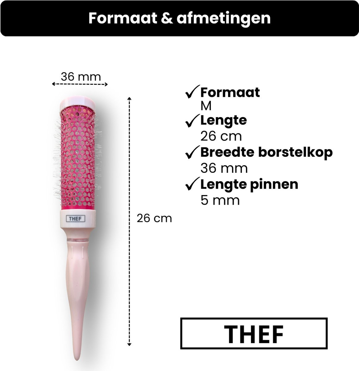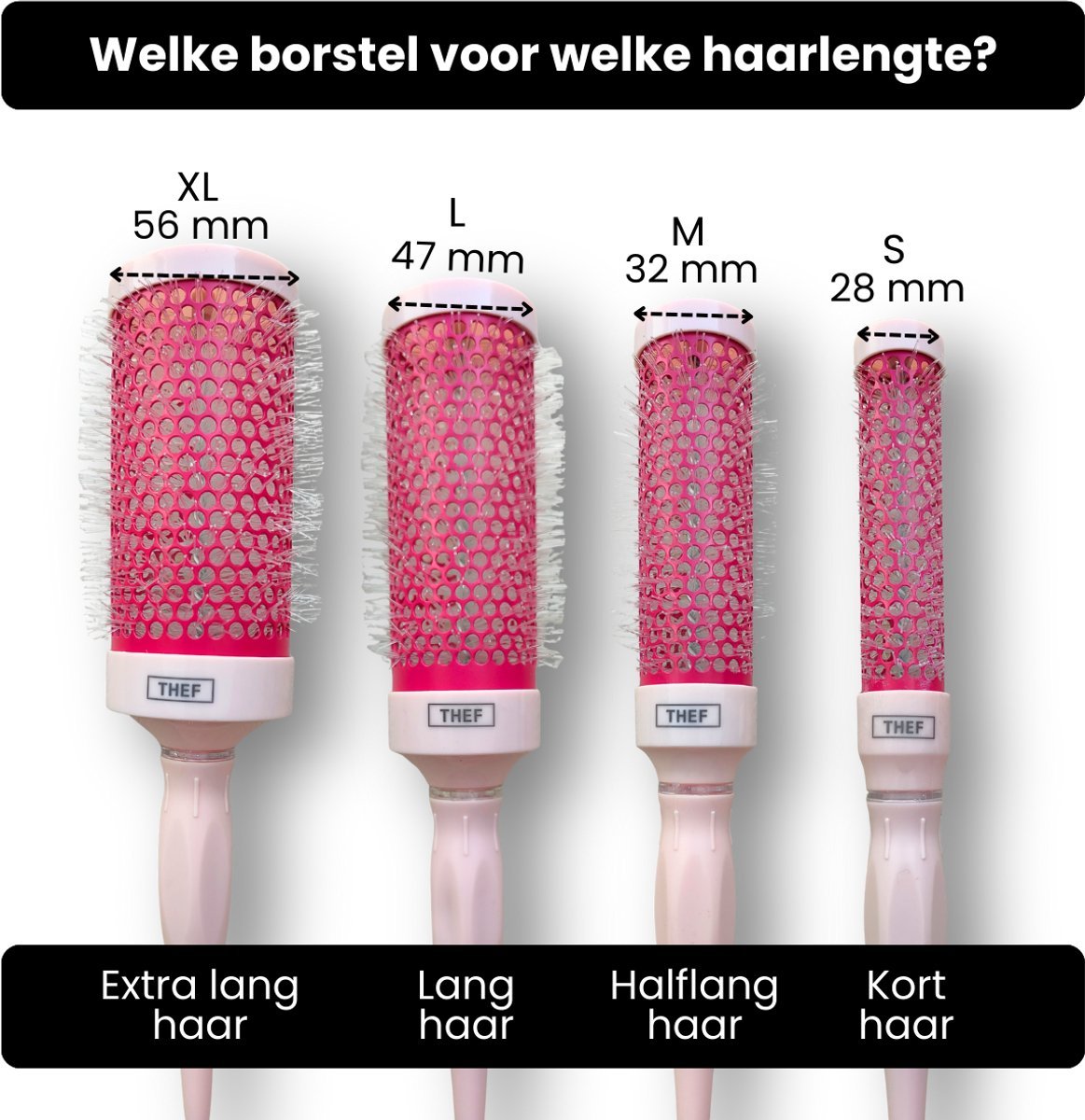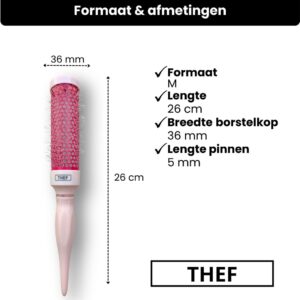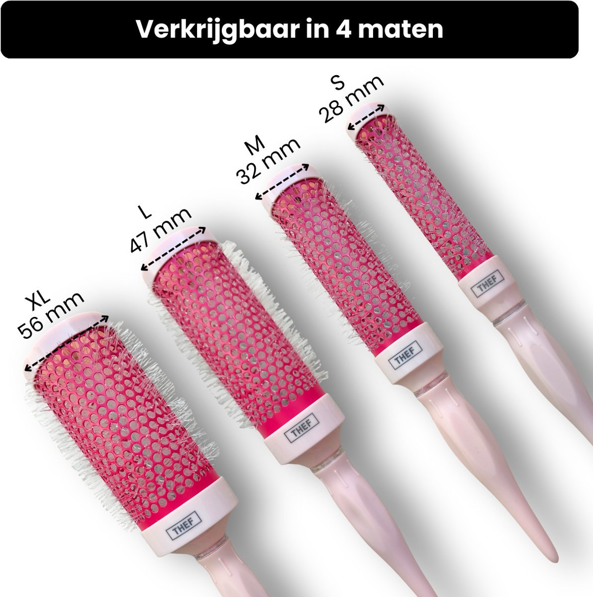 De THEF föhnborstel is verkrijgbaar in maat S, M, L en XL.