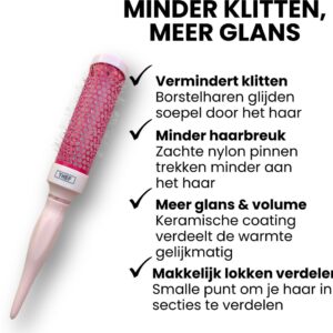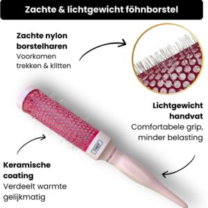 Dankzij de combinatie van hittebestendige materialen, antiklit nylon borstelharen en een open borstelstructuur wordt de warmte van de föhn gelijkmatig verdeeld. Dit zorgt voor meer controle tijdens het stylen en een verzorgd eindresultaat, zonder het haar onnodig te belasten.